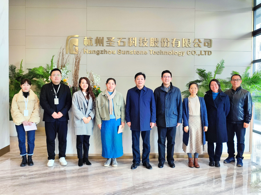 12月13日,錢塘區(qū)委統(tǒng)戰(zhàn)部部長周偉東、錢塘區(qū)工商業(yè)聯(lián)合會副主席應群穎一行專程赴圣石科技走訪調研,企業(yè)董事長石磊、黨支部書記孫莎莎等相關負責人與會懇談。