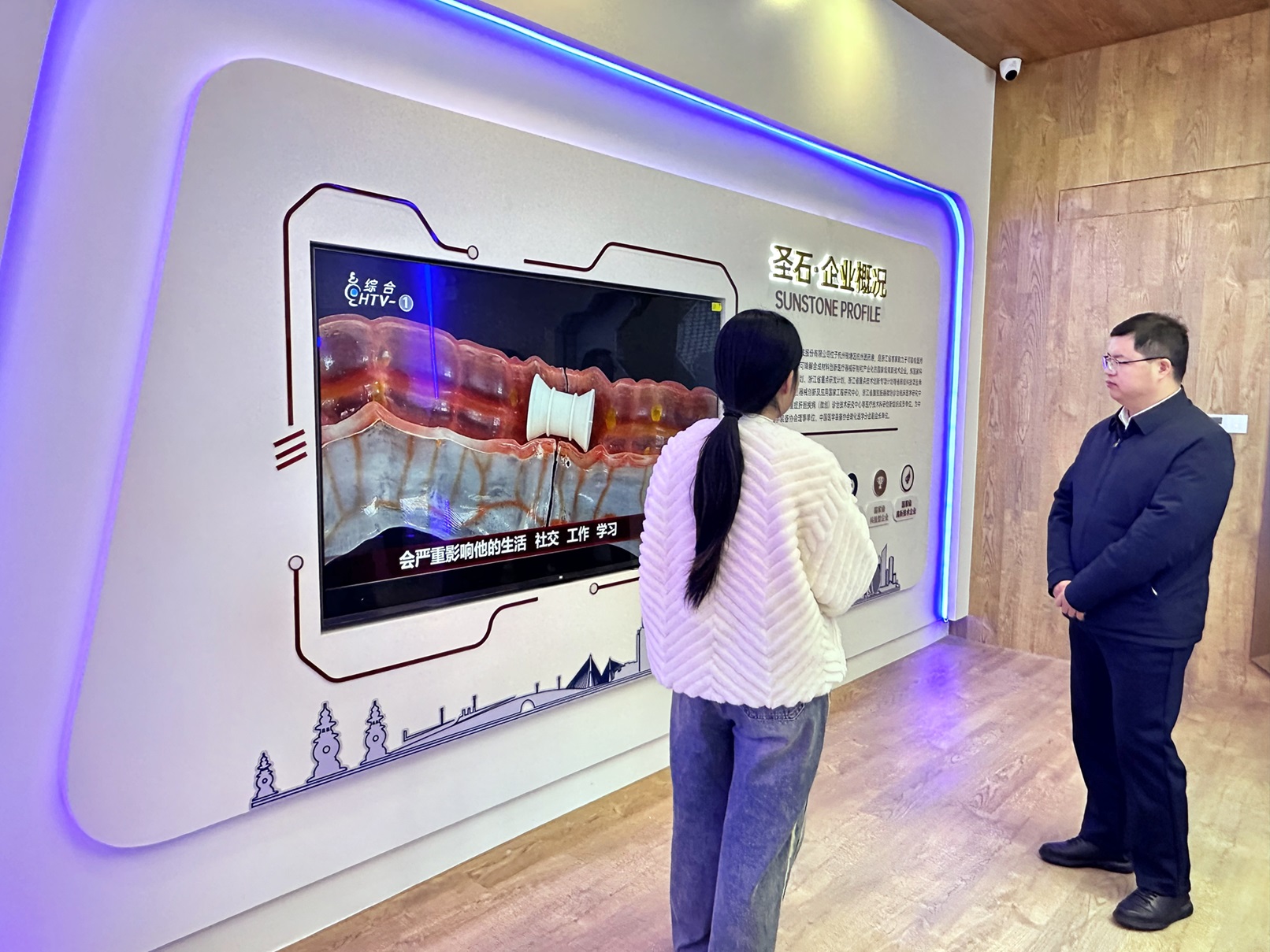 調(diào)研座談中,圣石科技總經(jīng)理石磊向馬區(qū)長介紹了企業(yè)經(jīng)營綜合概況以及當(dāng)前困處,也提出了希望政府部門在大力支持民營經(jīng)濟(jì)健康持續(xù)發(fā)展上,可采取哪些切實(shí)可行、行之有效的若干創(chuàng)新舉措。隨后,調(diào)研組一行參觀了企業(yè)展廳,對企業(yè)風(fēng)貌特色有了更深入的了解。