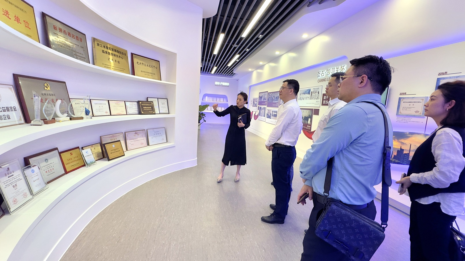 蔣副局長(zhǎng)一行首先參觀了圣石科技企業(yè)展廳,對(duì)企業(yè)發(fā)展歷程、技術(shù)創(chuàng)新成果以及在醫(yī)用耗材領(lǐng)域的最新產(chǎn)品進(jìn)行了全面了解。圣石科技作為行業(yè)內(nèi)的醫(yī)械創(chuàng)新先鋒,其在醫(yī)用耗材的研發(fā)、生產(chǎn)和供應(yīng)方面展現(xiàn)出的創(chuàng)新實(shí)力和市場(chǎng)影響力得到了調(diào)研組的高度評(píng)價(jià)。隨后,雙方圍繞“醫(yī)用耗材準(zhǔn)入掛網(wǎng)政策”、“醫(yī)療服務(wù)項(xiàng)目新增與調(diào)整”等核心議題展開了深入的座談交流。石總就當(dāng)前企業(yè)在執(zhí)行相關(guān)政策過程中遇到的實(shí)際問題及面臨的挑戰(zhàn)進(jìn)行了詳盡闡述,并就如何進(jìn)一步優(yōu)化醫(yī)用耗材的采購(gòu)流程、提高醫(yī)療服務(wù)項(xiàng)目的效率與質(zhì)量提出了寶貴的意見和建議。企業(yè)特別強(qiáng)調(diào)了希望加強(qiáng)政策靈活性、提升信息透明度、正確樹立人才培育就業(yè)導(dǎo)向等設(shè)想,以期更好地做好協(xié)同服務(wù)于廣大醫(yī)患,推動(dòng)醫(yī)療健康產(chǎn)業(yè)的可持續(xù)發(fā)展。